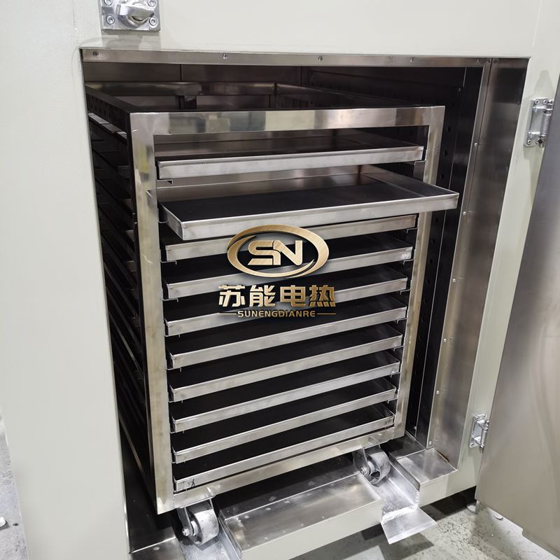 采用強(qiáng)壓式循環(huán)送風(fēng)方式將熱風(fēng)從出風(fēng)板兩側(cè)快速吹出,頂部吸風(fēng)口將熱風(fēng)循環(huán)送到頂部風(fēng)道,從而實(shí)現(xiàn)內(nèi)循環(huán),避免熱量流失,頂部高溫軸流風(fēng)機(jī)配合理性風(fēng)輪有效的將熱風(fēng)吹散至箱體每個(gè)角落,四周導(dǎo)流板的設(shè)計(jì)更加符合風(fēng)速及慣性的作用,使得溫度更加均勻。