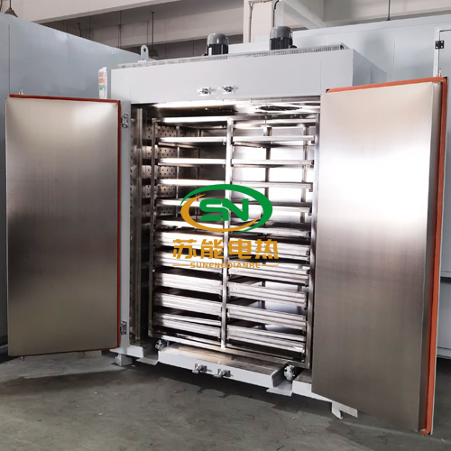 采用強(qiáng)壓式循環(huán)送風(fēng)方式將熱風(fēng)從出風(fēng)板兩側(cè)快速吹出,頂部吸風(fēng)口將熱風(fēng)循環(huán)送到頂部風(fēng)道,從而實現(xiàn)內(nèi)循環(huán),避免熱量流失,頂部高溫軸流風(fēng)機(jī)配合理性風(fēng)輪有效的將熱風(fēng)吹散至箱體每個角落,四周導(dǎo)流板的設(shè)計更加符合風(fēng)速及慣性的作用,使得溫度更加均勻。